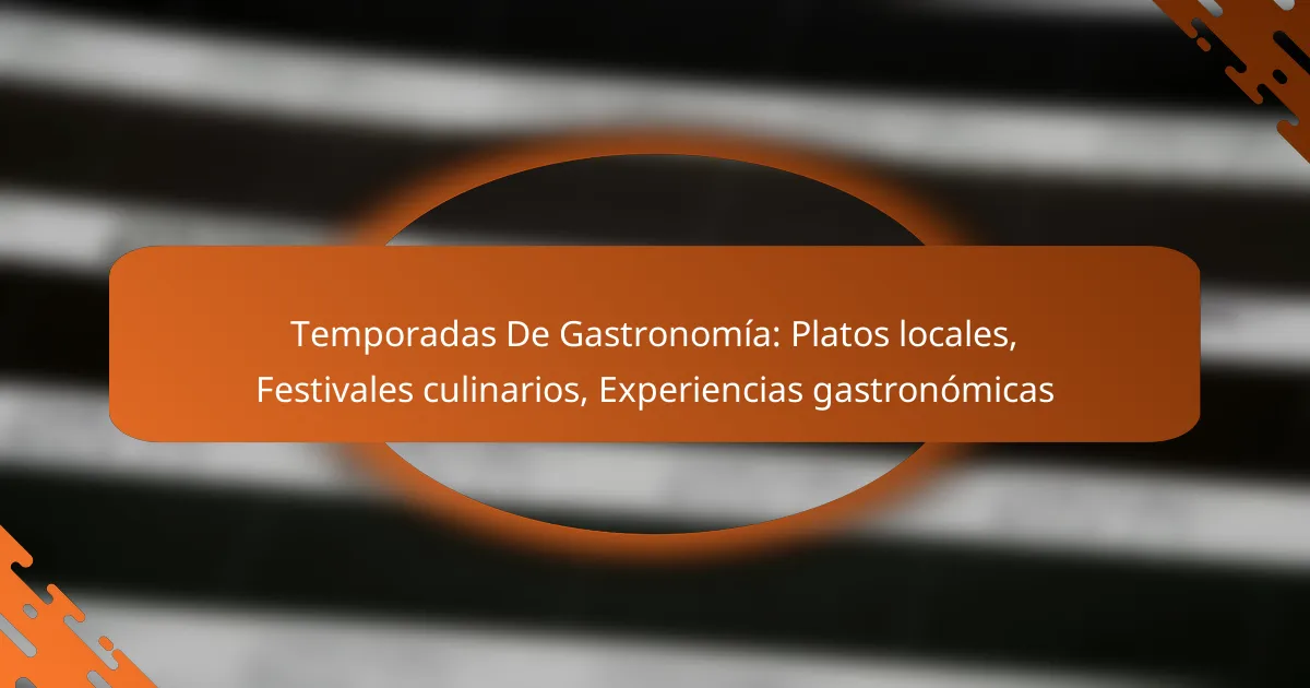 Las temporadas de gastronomía son períodos específicos del año dedicados a la celebración y promoción de platos locales, ingredientes de temporada y tradiciones culinarias. Estas temporadas pueden incluir festivales, ferias y eventos que resaltan la riqueza cultural y gastronómica de una región.